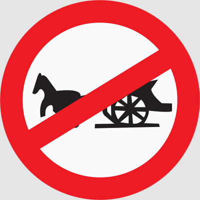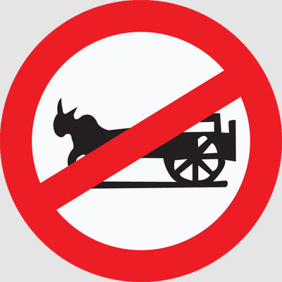 This sign is meant to keep the road clear for faster motorized vehicles, Animal-drawn carts are strictly forbidden from entering this road. | bullock cart prohibited Entry for bullock carts is prohibited. |