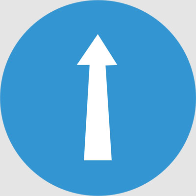 You must proceed straight ahead. Turning left or right at the intersection is strictly prohibited | compulsory ahead In busy areas like Faridabad or Gurgaon, you will see this sign at major junctions to keep traffic moving fast on the main road. |
