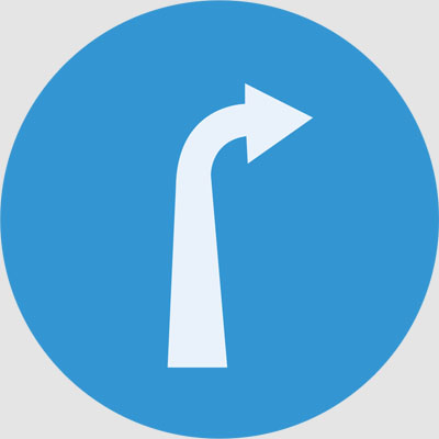 this sign reprent to You must turn right at the intersection. You are not allowed to go straight or turn left. | Compulsory turn right you have to Compulsory turn right |