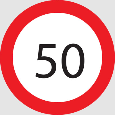 You must not exceed the speed shown on the sign. Driving even 1, km/H-over this limit is a legal offense. | speed limit The maximum speed allowed is 50-km/h. |